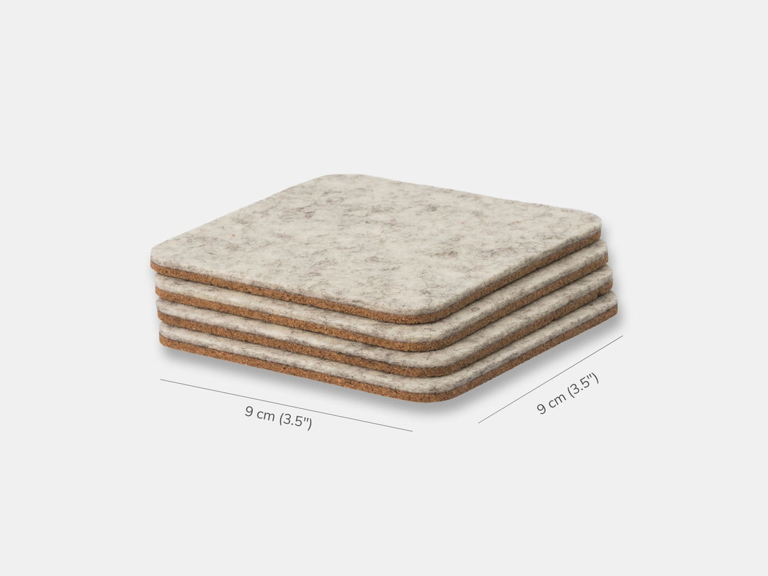 Dank der Verbindung von Filz und Kork bieten die Untersetzer wirksamen Schutz vor hohen Temperaturen für die Oberfläche (besonders, wenn sie aus Holz ist) – du musst dir also keine Sorgen machen, wenn du einen heißen Tee- oder Kaffeebecher auf die Untersetzer stellst.
