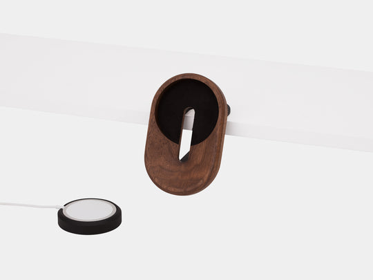 La structure MagSafe iPhone Desk Shelf Mount vous permet de détacher le support métallique afin de lester efficacement le chargeur et l'empêcher de glisser sur le plan de travail.