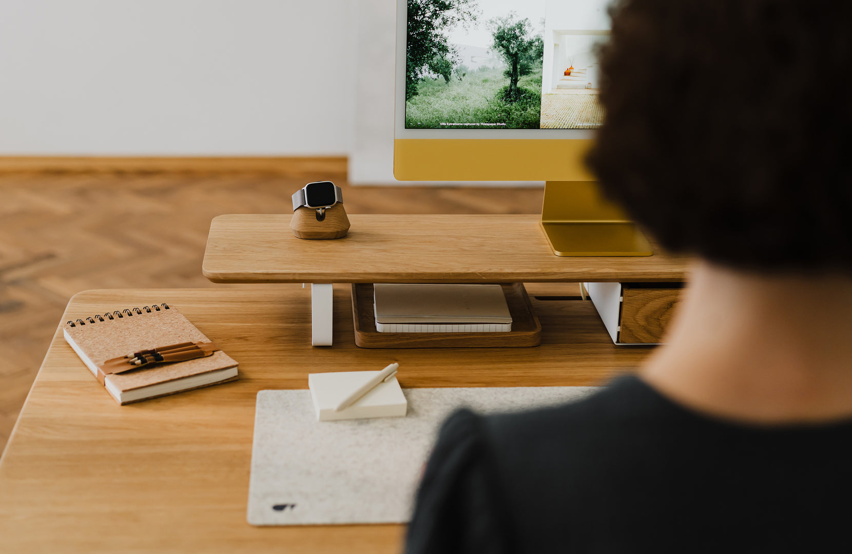 Les supports d'écran et d'ordinateur portable sont conçus pour prendre le moins de place possible sur votre bureau, tout en offrant un moyen pratique et ordonné de ranger quelques appareils supplémentaires. Fabriqués à partir de bois provenant de sources responsables, nos supports pour ordinateurs portables se caractérisent par leur durabilité. Une étagère de bureau ou un support de moniteur vous permettra de placer votre écran à la bonne hauteur, tout comme un support d'ordinateur portable en bois qui vous permettra de positionner votre appareil à l'angle optimal. Il vous offre également un niveau d'organisation supplémentaire sur votre bureau - vous pouvez placer des plateaux et des bacs en bois pour les petits objets ou des organiseurs OakyBlocks sous le support ou l'étagère.