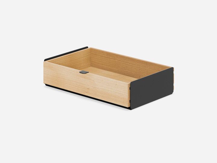 Regardless of the base and the modules, large drawers fit the Desk Shelf both in dimensions and design - the space between the standard desk shelf’s legs allows for 2 large drawers to be placed underneath.