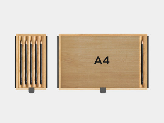 The organizer fits perfectly in our modular drawers: 5 pieces fill out the entire small drawer, whereas placing a single piece in the large drawer leaves an A4-sized space.